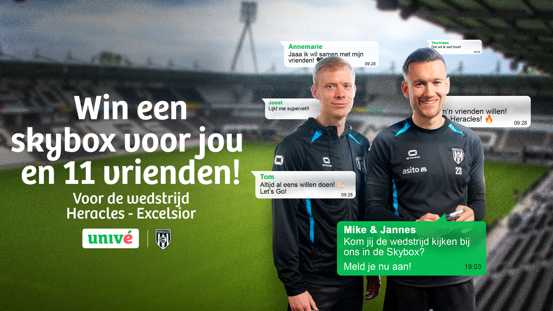 Wil je samen met een vriend(in), familie of kennis deze wedstrijd kijken vanuit de skybox? Deel de actie dan eenvoudig via de WhatsApp-knop.